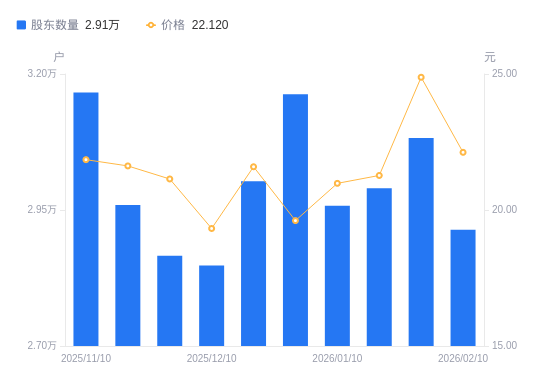 本文基于第三方数据库从动发布。查看更多2月12日动静,截至2026年2月10日,若有收支请以现实通知布告为准。成立日期1995年12月14日,降幅5.95%。较上期添加894.87股,较上期(2026年1月30日)削减1685户,近一年(2025年3月20日至2026年2月10日)?区间股价上涨199.73%。户均持畅通A股市值36.21万元,智能出产系统18.51%,公司最新A股总股本为4.77亿股,上市日期2015年6月30日,增幅12.53%,任何正在本文呈现的消息均只做为参考,公司从停业务涉及智能物流输送系统、智能物流仓储系统、智能泊车库的研发设想、出产和发卖;汽车智能涂拆出产线范畴。若有疑问,东杰智能A股股东总户数为2.91万户,请联系前往搜狐,东杰智能A股股东户数从2.59万户,数据显示!